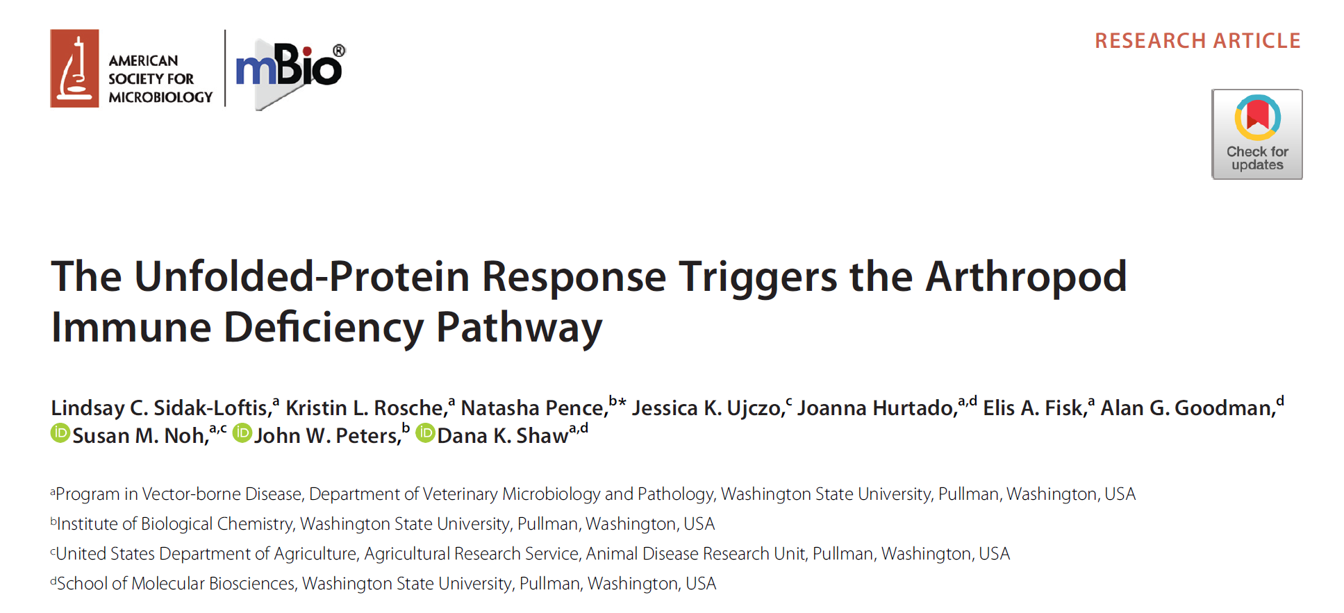 Our story “The Unfolded-Protein Response Triggers the Arthropod Immune Deficiency Pathway” is now published in mBio and available to read online!