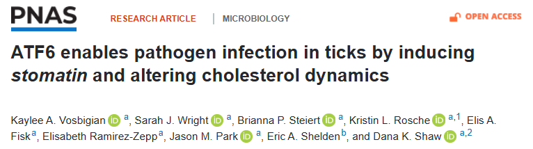Really proud to be sharing this work showing that Anaplasma activates the ATF6 branch of the unfolded protein response in Ixodes ticks to facilitate cholesterol uptake for growth and survival.